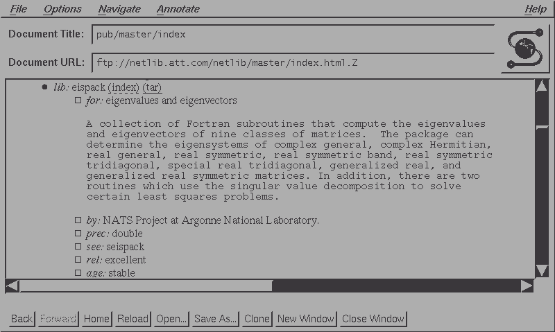 file md5.tex for PGP-signed MD5 checksums to validate mirrors # written Jul 1997 file md5.ps file bibnet.tex for announcing the BibNet bibliography archive # written Jan 1995 file bibnet.ps file gams.ps for the GAMS classification system by Ron Boisvert # written Jul 1994 size 239 kB file wwwtn.tex # a followup note on the Tennessee facilities, written Jun 1994 file www.tex for announcing netlib.att.com joined the World Wide Web in Oct 1993 file www.ps file searching # written Jun 1992 file bigfiles # written Aug 1991 file contributions # written Dec 1990 file greetings # written Jul 1990 # the following are of, at best, historical interest file nanet1 file nanet2 file nanet3 file netnews1 file eispack.gif file bibnet.ps file bibnet.tex