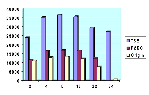 for all three machines, especially the T3E-900. Notice that the performance
